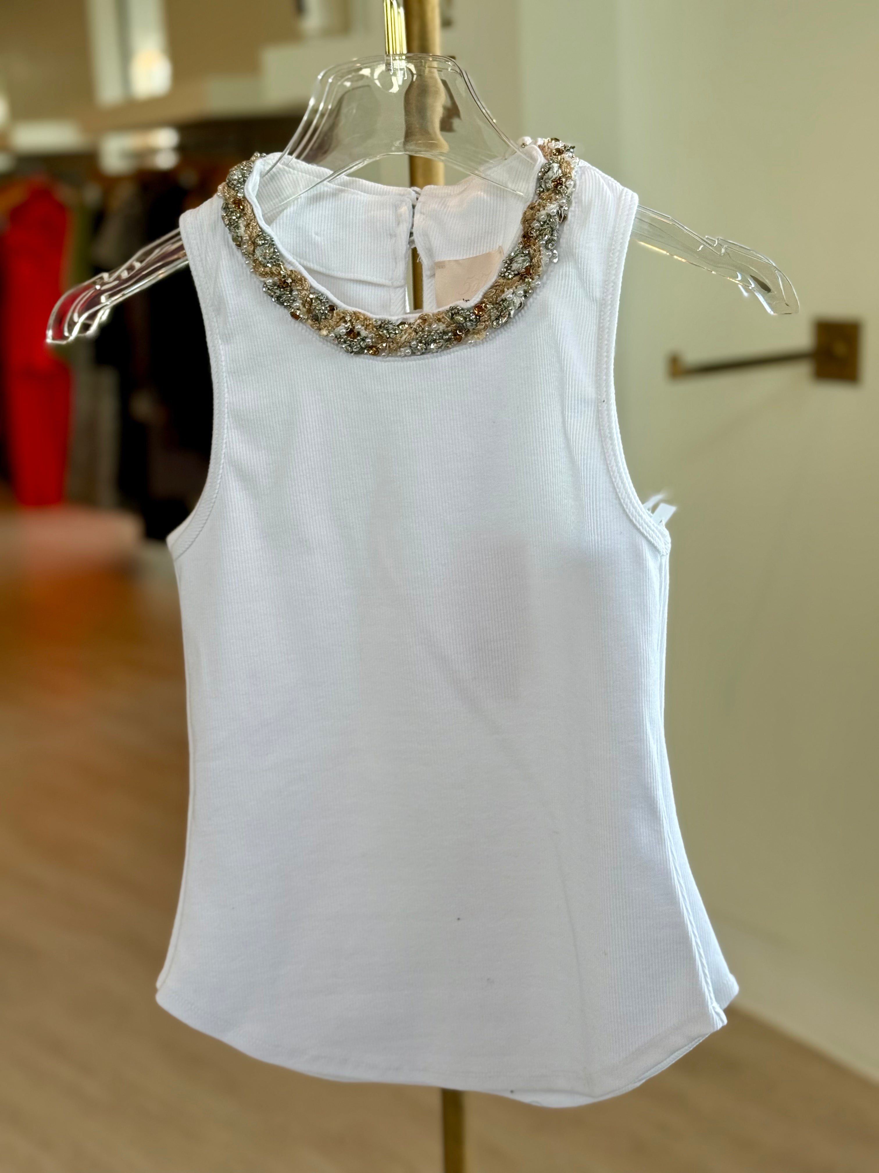 Ci1697 Embellished Tank - White