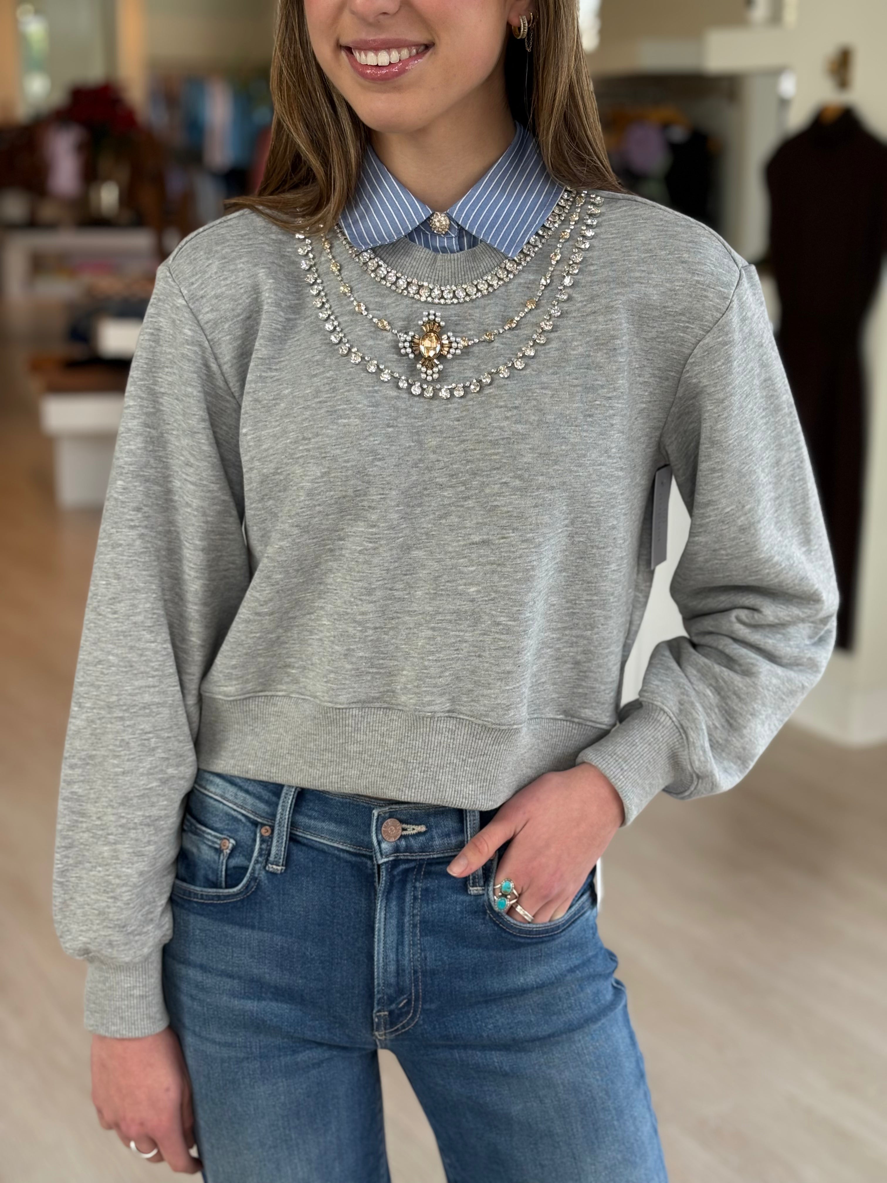 Ci111519 Embellished Layered Sweatshirt